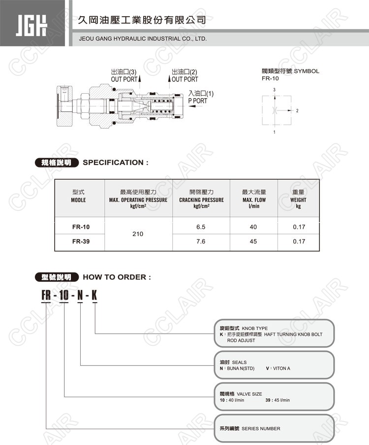 FR-10-N-K,FR-10-V-K,FR-39-N-K,FR-39-V-K,JeouGang臺灣久岡,優(yōu)先分流閥