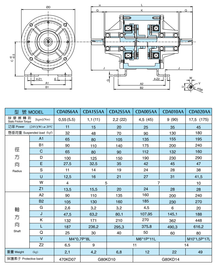 CDA0S6AA,CDA1S5AA,CDA2S5AA,CDA005AA,CDA010AA,CDA020AA內(nèi)藏式電磁離合器剎車器組合體