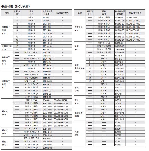STQ8-4,STQ8-6,STQ12-6,STQ12-8,STQ14-8,STQ14-10,STQ14-12,STQ18-12,STQ18-16,STB14-10,STB18-12,STS12-8,STS12-12 STS14-12,STS14-14,STS18-14,STS18-18,STT8-M5,STT8-M6,STT8-01,STT12-M6,STT12-01,STT14-01,STT14-02,STT18-02 STT18-03,SBA8-01-NCU,SBA12-01-NCU,SBA12-02-NCU,SBA12-03-NCU,SBA14-02-NCU,SBA14-03-NCU,SBA14-04-NCU SBA18-03-NCU,SBA18-04-NCU,SBB12-8-NCU,SBB14-12-NCU,SBB18-14-NCU,SBC8-M5,SBC12-M6,SBC14-01,SBC18-02,SLB8-01-NCU SLB12-01-NCU,SLB12-02-NCU,SLB14-02-NCU,SLB14-03-NCU,SLB14-04-NCU,SLB18-03-NCU,SLB18-04-NCU,SST8-01,SST12-02 SST14-03,SST18-04,SKR8-4,SKR8-6,SKR12-6,SKR12-8,SKR12-10,SKR14-8,SKR14-10,SKR14-12,SKR18-12,SPG8,SPG12,SPG14 SPG18,SCP8,SCP12,SCP14,SCP18,SBN8-8,SBN12-12,SBN14-14,SBN18-18,SZB6,SZB12,SZB14,SZB16,SZB20,SZB22,SZB61,SZB62