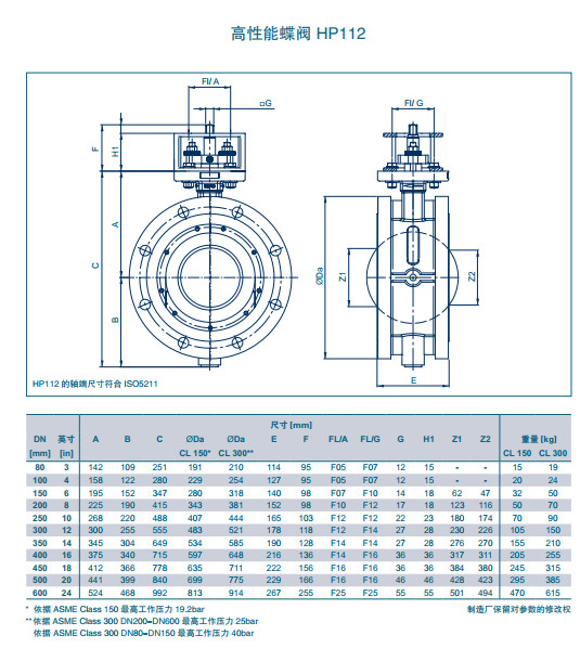 HP112 DN80,HP112 DN100,HP112 DN150,HP112 DN200,HP112 DN250,高性能蝶閥