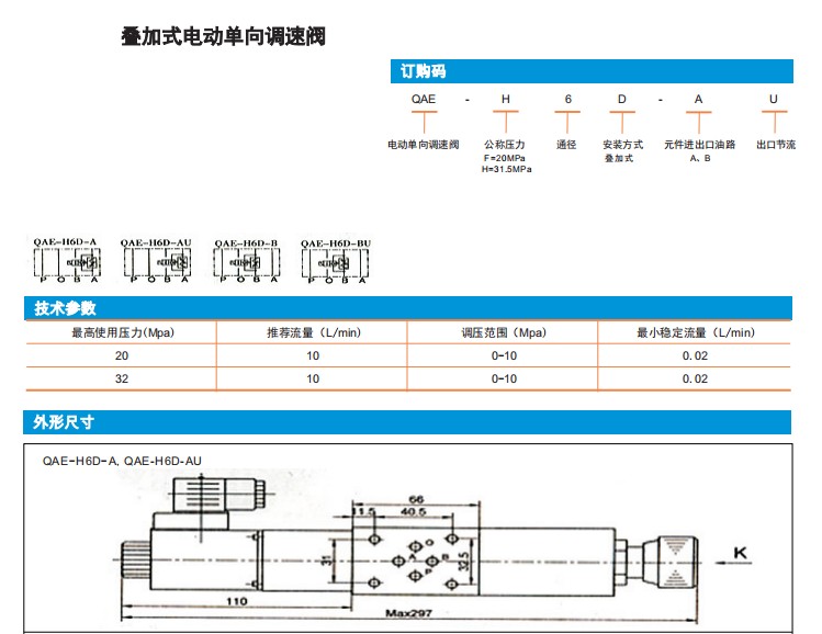 QAE-H6D-A,QAE-H6D-AU,QAE-H6D-B,QAE-H6D-BU,疊加式電動單向調(diào)速閥