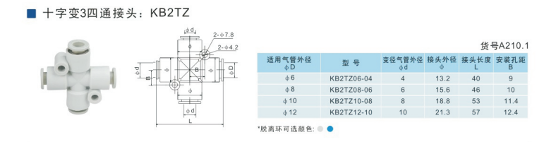 SMC型十字變3四通接頭KB2TZ04-06,KB2TZ06-08,KB2TZ08-10,KB2TZ10-12,