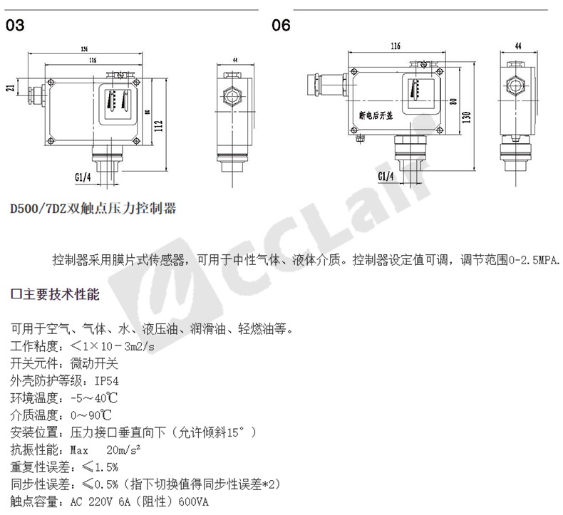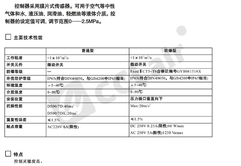 0812207,0814507,0812507,0814607,壓力控制器 D500/7DK切換差不可調(diào)