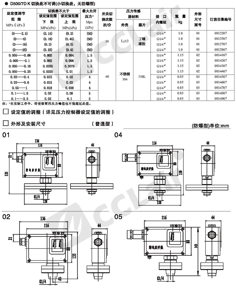 0852280,0854580,0852580,0854680,壓力控制器 防爆 D500/7D切換差不可調(diào)