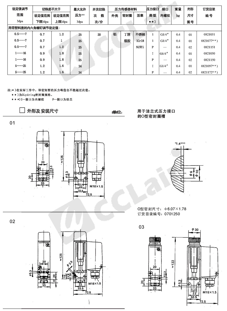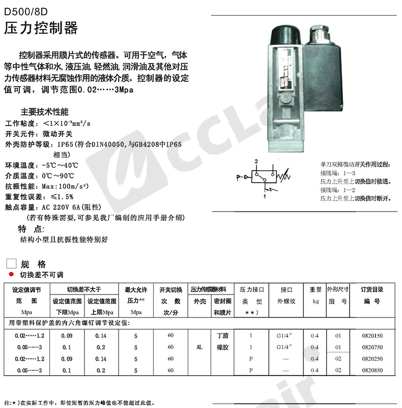 0815100,0813500,0815200,0813600,壓力控制器 普通 D501/7D切換差不可調(diào)
