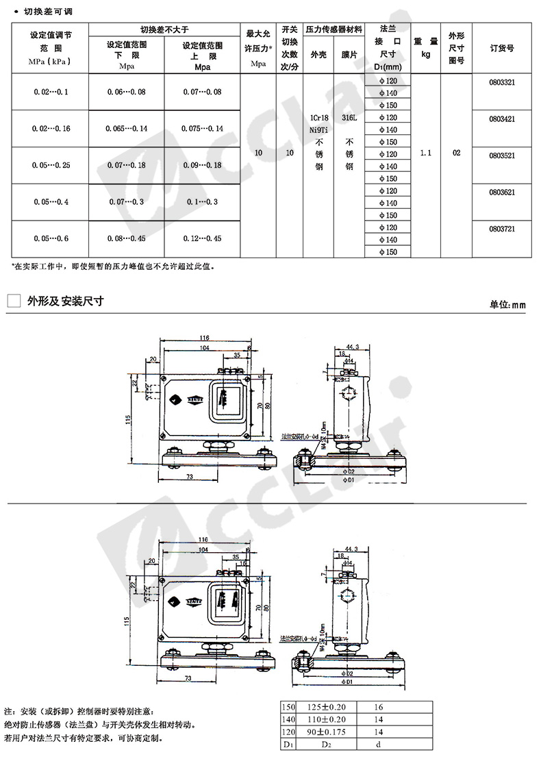 0813321,0813621,0813421,0813721,0813521,壓力開關(guān) D518/7D系列 螺紋G1/4