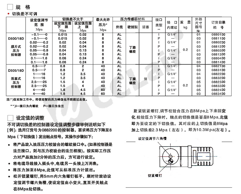 0810112,0811412,0810212,0811512,壓力開關(guān) D511/7DZ切換差不可調(diào)
