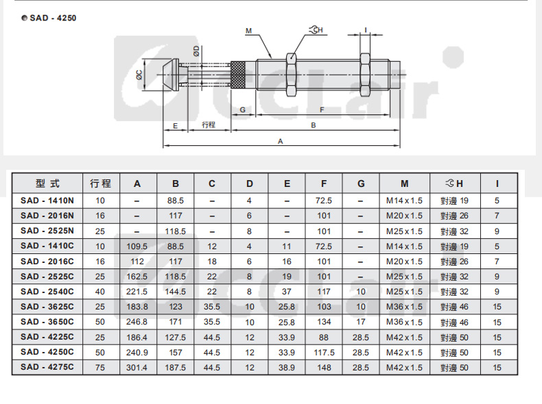 SAD-1410N,SAD-1410C,SAD-2016N,SAD-2016C,SAD-2525N,SAD-2525C,SAD-2540C,緩沖器,臺(tái)灣氣立可CHELIC型 SAC不可調(diào)式油壓 SAD-3625C,SAD-3650C,SAD-4225C,SAD-4250C,SAD-4275C,