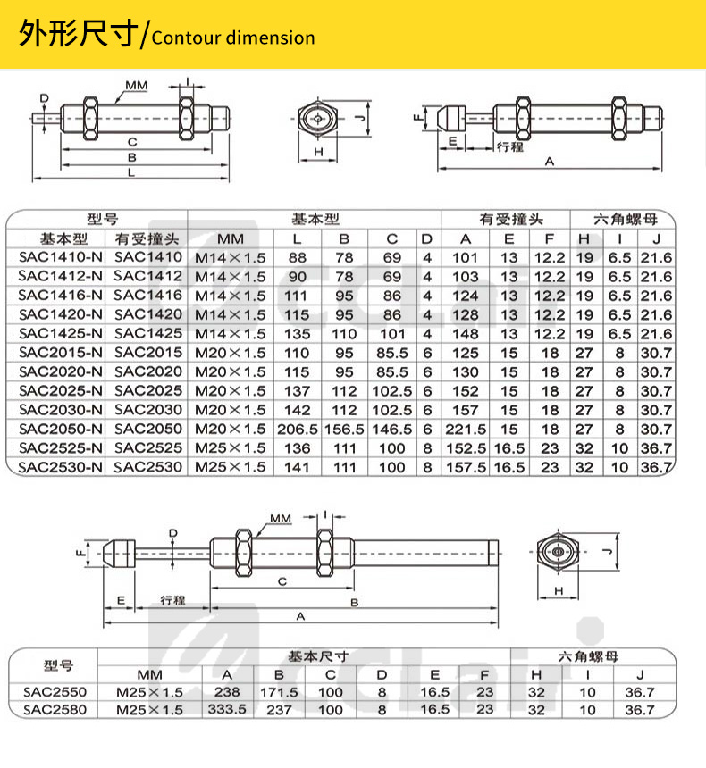 SAD-1410N,SAD-1410C,SAD-2016N,SAD-2016C,SAD-2525N,SAD-2525C,SAD-2540C,緩沖器,臺(tái)灣氣立可CHELIC型 SAC不可調(diào)式油壓