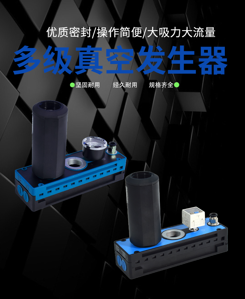 多級高真空型發(fā)生器的工作原理是利用噴管高速噴射壓縮空氣,?在噴管出口形成射流,?產(chǎn)生卷吸流動。?這種工作原理使得噴管出口周圍的空氣不斷地被抽吸走,?從而使吸附腔內(nèi)的壓力降至大氣壓以下,?形成一定真空度。