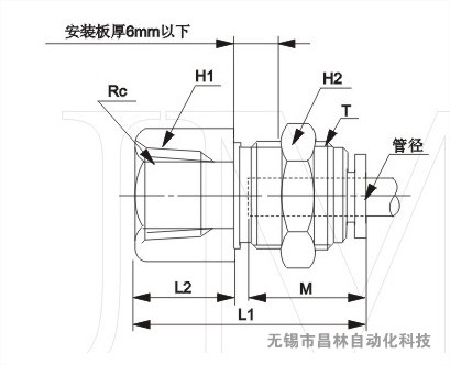 MODEL | 管徑 | Rc | T | H1 | H2 | L1 | L2 | 安裝孔 | M | CT(mm2) | 重量 |