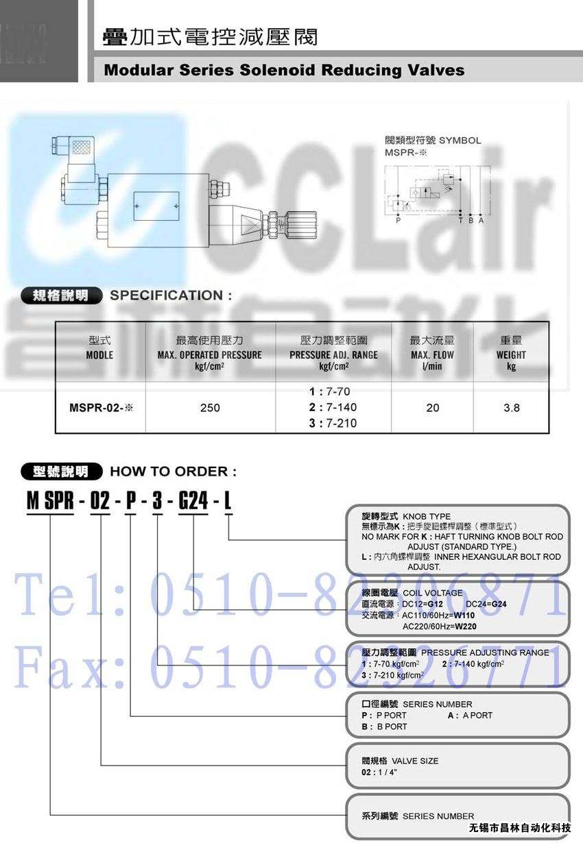 MSPR-02-B-3-W110-K, | 疊加式電控減壓閥 | |