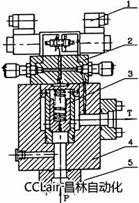 2 、控制蓋板 —— 由蓋板內(nèi)嵌微型先導(dǎo)控制元件(節(jié)流螺塞)以及其它零件等構(gòu)成。它主要用來固定插裝件并保證密封;溝通控制油路和主閥控制腔之間的聯(lián)系,并實(shí)施控制。