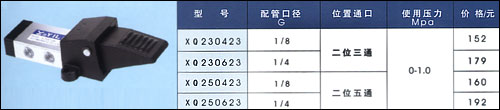 用腳的踩踏控制閥,廣泛應(yīng)用于各種氣動(dòng)系統(tǒng)中,操作力小,解放雙手,二位三通的R、P口可互換,使常閉轉(zhuǎn)化為常開。