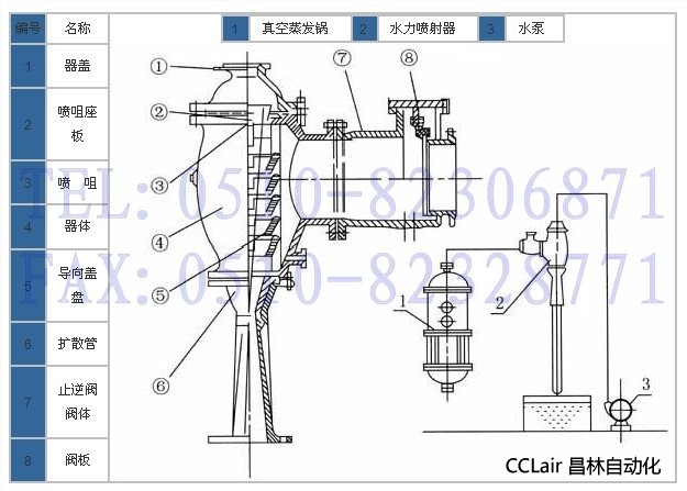 W型水力噴射器整個裝置結(jié)構(gòu)緊湊精密,強度變較高,用于真空蒸發(fā)系統(tǒng)中,由于能把冷凝器的冷凝作用與真空泵的抽氣作用合并在一個設(shè)備中同時完成,大大地簡化了工藝流程, 比之原來用真空泵與舊式冷凝器的裝置,可以節(jié)省去真空泵、冷凝器,分水器等設(shè)備,并且還有下列優(yōu)點: