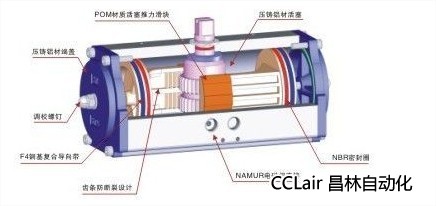 當(dāng)壓縮空氣從A孔進(jìn)入兩活塞之間的中腔時(shí),由于壓力作用使兩活塞分離。 氣缸兩端氣腔的空氣通過(guò)B孔排出,同時(shí)中心軸便逆時(shí)針?lè)较蛐D(zhuǎn)90°,所對(duì) 應(yīng)的閥門也跟著逆時(shí)針?lè)较蛐D(zhuǎn)90°打開。 |