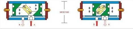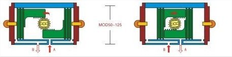 當(dāng)壓縮空氣從B孔進(jìn)入兩活塞外腔時(shí),由于壓力作用,使兩活塞向中間合攏。 氣缸中腔的空氣通過(guò)A孔排出,同時(shí)中心軸便順時(shí)針?lè)较蛐D(zhuǎn)90°,所對(duì)應(yīng)的閥門 也跟著順時(shí)針?lè)较蛐D(zhuǎn)90°關(guān)閉。 |