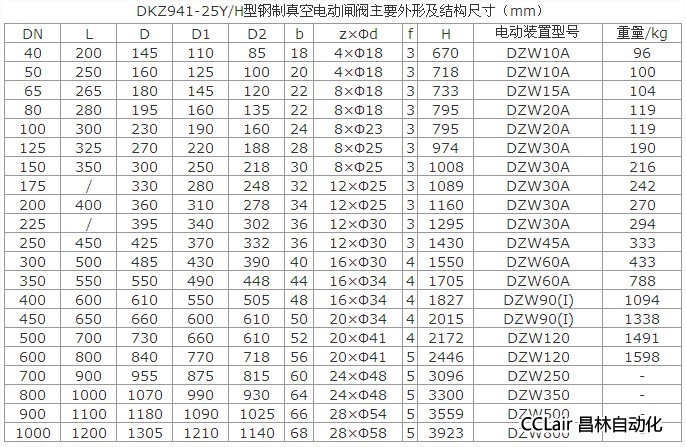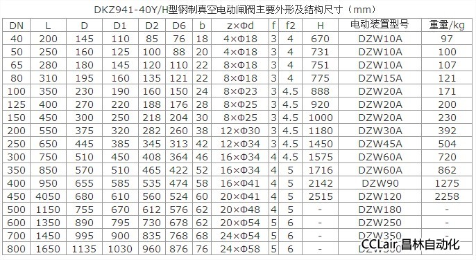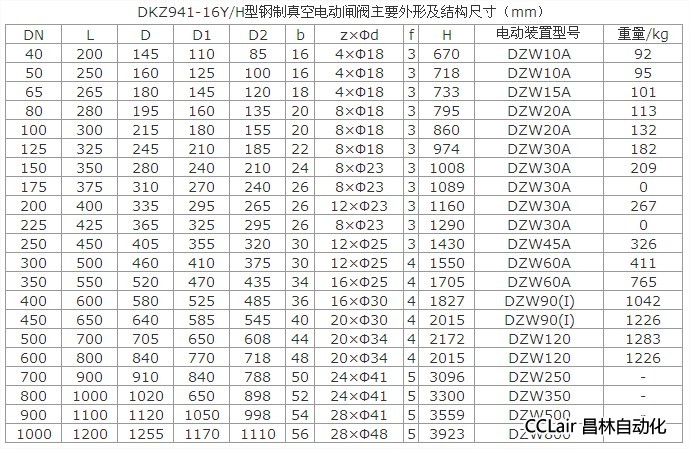 DKZ941(H、Y)型鋼制真空電動閘閥:電動、法蘭連接、明桿楔式剛性單閘板,閥座密封面材料為合金鋼(DKZ941H)、硬質(zhì)合金(DKZ941Y),公稱壓力 PN10~PN100,閥體材料為優(yōu)質(zhì)碳鋼(DKZ941H)、鉻鉬鋼(DKZ941Y)的真空閘閥。