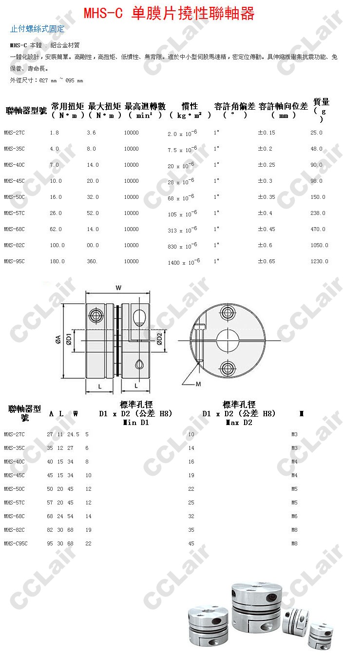 MHS-27C,MHS-35C,MHS-40C,MHS-45C,MHS-50C,MHS-57C,MHS-68C,MHS-82C,MHS-95C,單膜片撓性聯(lián)軸器