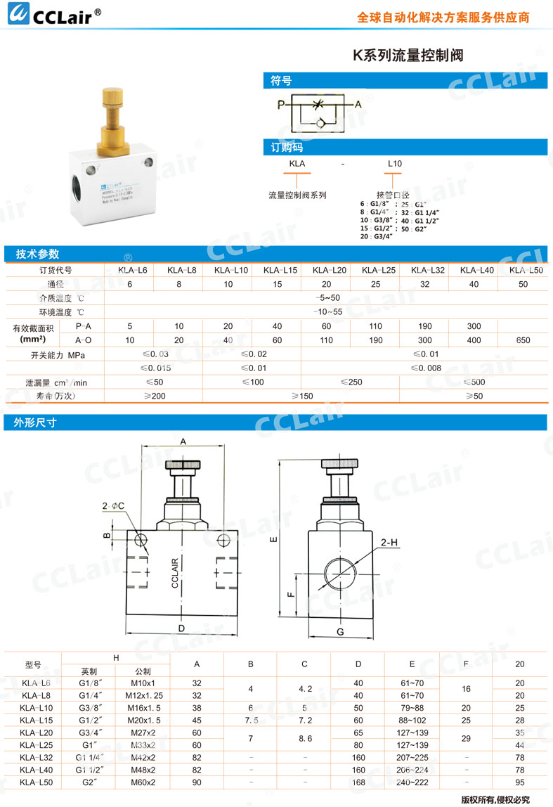 KLA-L6,KLA-L8,KLA-L10,KLA-L15,KLA-L20,KLA-L25,KLA-L32,KLA-L40,KLA-L50,單向控制閥