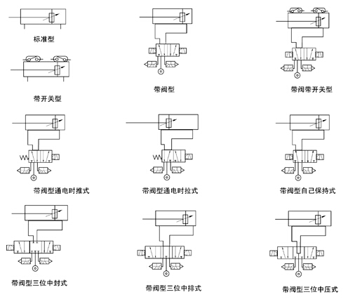 通電時(shí)活塞桿伸出式 | 通電時(shí)活塞桿返回式 | 自己保持式 | 中封式 | 中泄式 | 中壓式 | ||