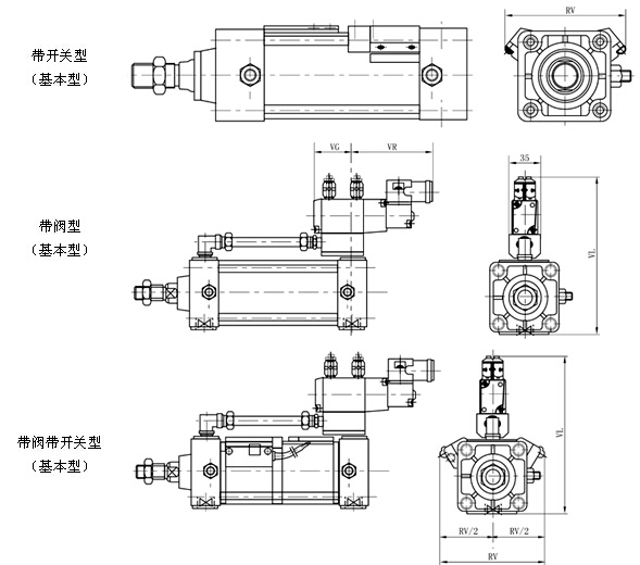 氣缸內(nèi)徑Ф(mm) | RV | VG | VL | VR |