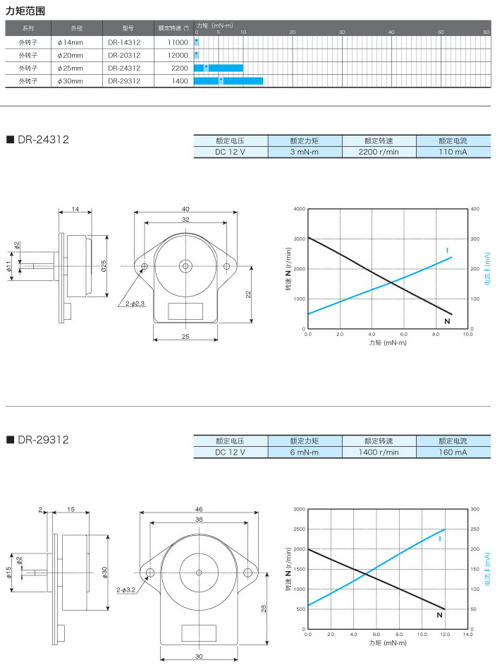 DR-14312,DR-20312,DR-24312,DR-29312,外轉(zhuǎn)子直流無(wú)刷馬達(dá)