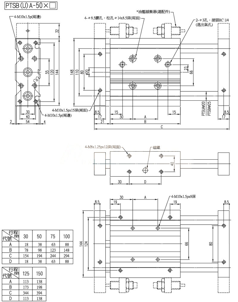 PTSBA-10,PTSBA-20,PTSBA-32,PTSUA-10,PTSUA-20,PTSUA-32,panix導(dǎo)桿滑塊氣缸