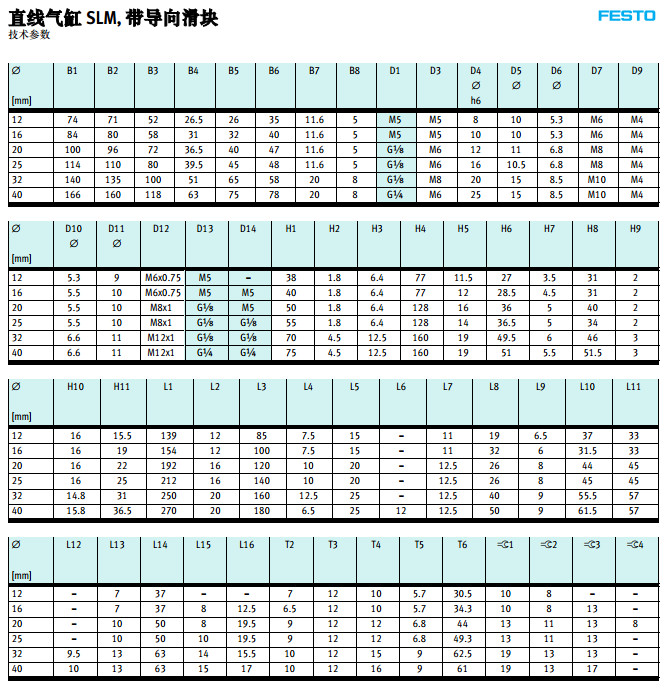 SLM-12,SLM-16,SLM-20,SLM-25,SLM-32,SLM-40,festo直線氣缸