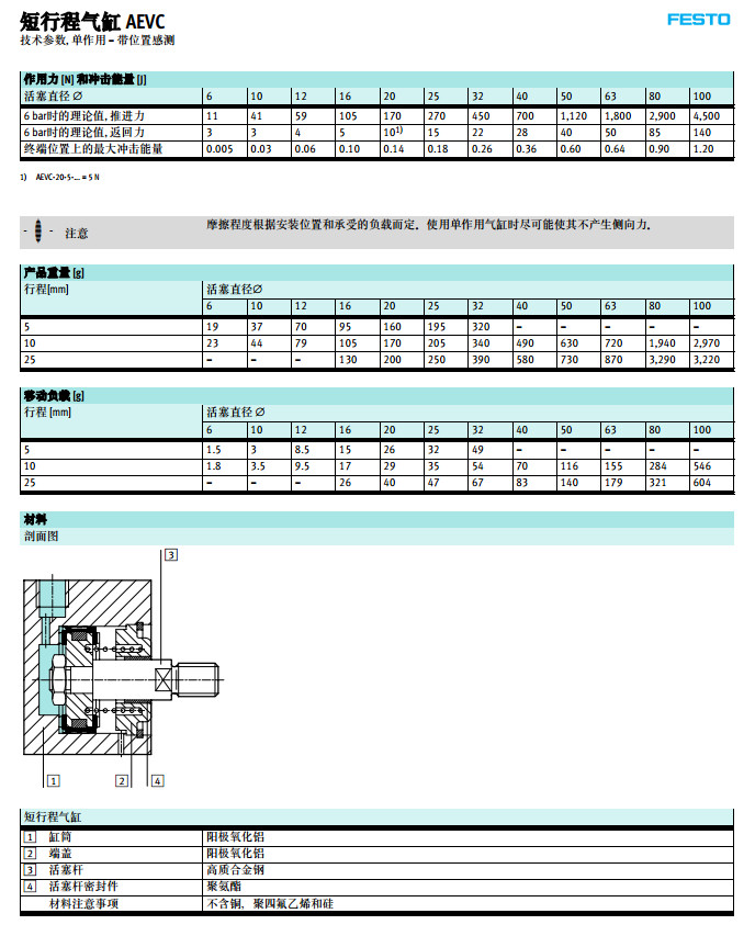AEVC-4,AEVC-6,AEVC-10,AEVC-25,AEVC-32,AEVC-40,AEVC-50,festo短行程氣缸