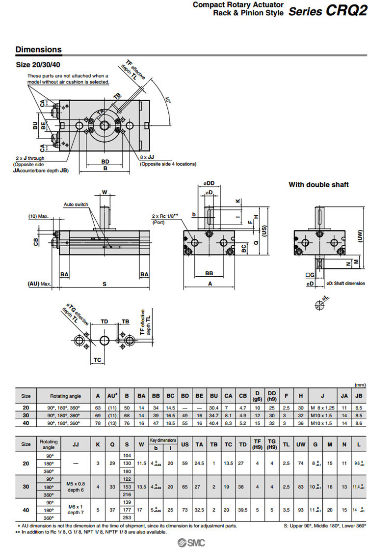 CRQ2BS10-90,CRQ2BS15-90,CRQ2BS20-90,CRQ2BS30-90,CRQ2BS40-90,SMC薄型擺動氣缸
