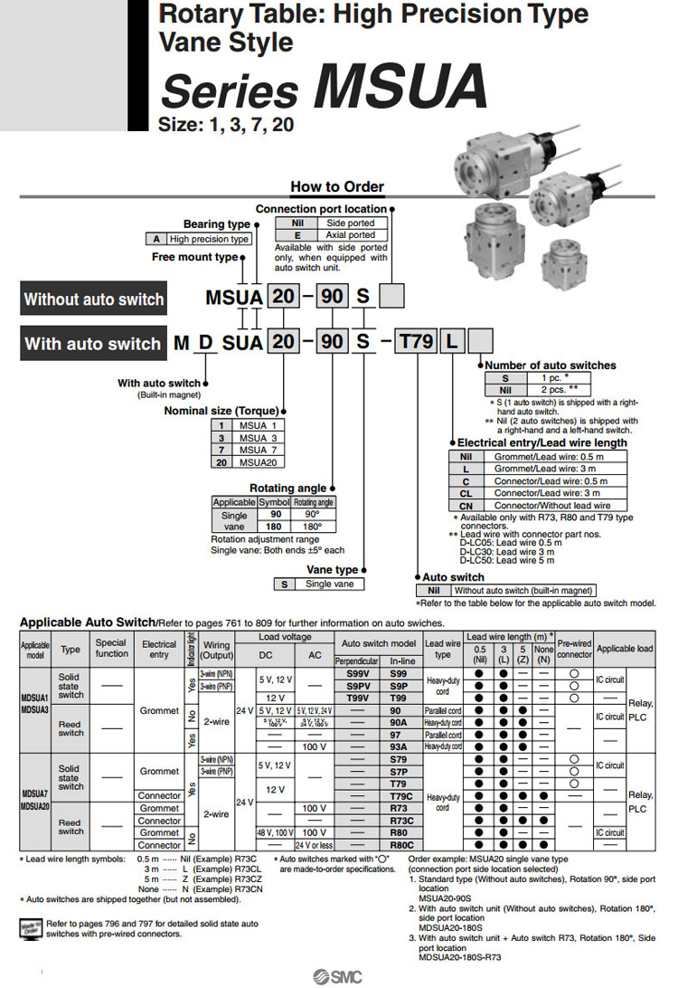 MDSUA1-90,MDSUA1-180,MDSUA3-90,MDSUA3-180,MDSUA7-90,MDSUA7-180,MDSUA20-90,MDSUA20-180,SMC擺臺(tái)氣缸